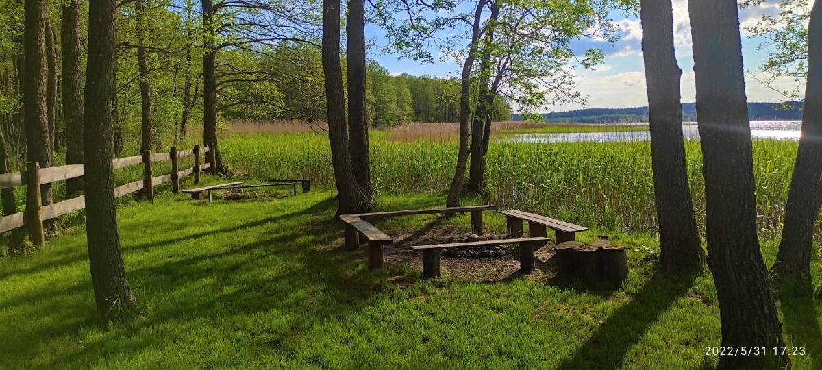 - Infrastruktura zewnętrzna: altany/zadaszenia, ławki z oparciami, wyznaczone miejsce na ognisko